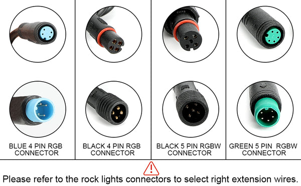 WE ARE UPDATING ROCK LIGHTS CONNECTORS. DIFFERENT ROCK LIGHTS CONNECTORS NEED DIFFERENT EXTENSION WIRES.
